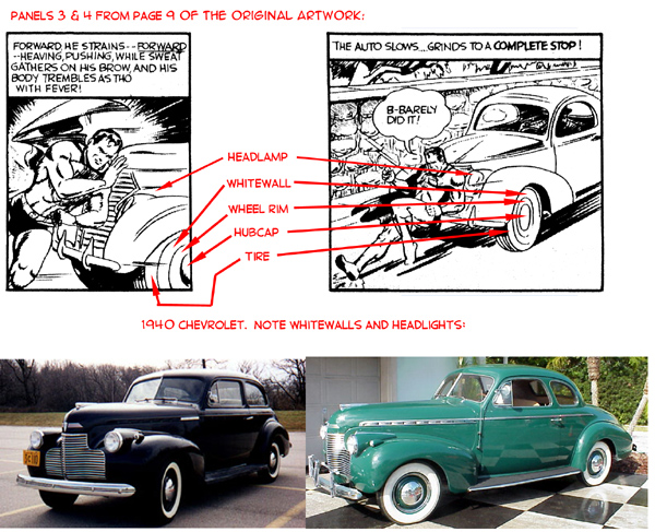 After doing this research and reconstruction; we then discovered that the 1940 Chevrolet had already been used on the cover to Action Comics #30, the issue directly preceding Superman #8.  Not only that, but we had chosen the same color for the car.