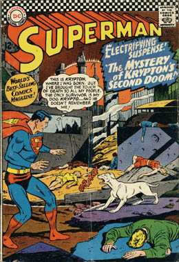 Superman #189, 1966 Under the guidance of Weisinger and Siegel, Luthor slowly evolved into a truly three dimensional character, at once capable of the most self serving cruelty, and the ultimate noble sacrifice, depending for the most part on whether or not Superman is involved. Driven solely by his desire to prove once and for all his superiority to the Metropolis Marvel, Luthor's character is clearly sketched in Jerry Siegel's classic "Death of Superman" tale (Superman #149, January, 1960). Who could forget Luthor's trial in Kandor, when the man grinned and gloated throughout the proceedings, confident that he would be proclaimed a hero once he offered to enlarge Kandor to full size again, and his uncomprehending horror when his offer was turned down?