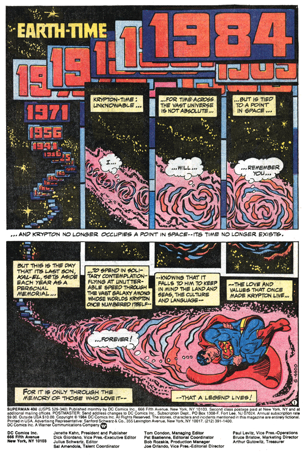 An excerpt from Superman #400 (1984), by Elliot S! Maggin and Joe Orlando