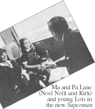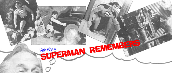 The speaker is Kirk Alyn and if he seems a bit prejudiced in favor of the new SupermanThe Movie release, he has good reason. Back in the 1940s, Kirk Alyn was Superman. In 1948 he became the first actor ever to portray The Man of Steel on the silver screen. Following a successful series of cartoons and a smash radio show, Columbia Pictures lensed a serial called Superman, starring Kirk Alyn as Clark Kent/Superman. The serial proved such a box-office hit that, in 1950, a second cliffhanger, Atom Man vs. Superman, was released, again featuring Kirk Alyn. ![]() Following those superhero days, the actor has busied himself with TV commercial work. These days, however, his thoughts are once again focused on Metropolis because of the new, widescreen Superman motion picture. "I'm in the movie," he says proudly. "I play the father of Lois Lane when she is nine years old. Noel Neill, who played the old Lois Lane in the TV show and the serial, is also in the picture. She plays Lois' mother. I guess that makes us Ma and Pa Lane." The serial star is clearly pleased with The Man of Steel's update. "Basically, they're sticking very much to the storyline of the original version," he says. "They're playing it absolutely straight. They're not spoofing it at all. I'm glad they're doing it that way, otherwise it would offend a good many people who enjoyed the original series. I've read the new script very carefully. It's extremely good. As for the special effects, they'll revolutionize the industry. They will far outdo the likes of Star Wars and Close Encounters." Appearing in the Superman motion picture has stirred up quite a few fond memories for Alyn. "It was great fun playing Superman," he recalls. "When I was a little child, my father never let me play cops and robbers. Now, there I was playing Superman. I was getting it all out of my system. It was marvelous." Without too much prodding, the genial actor recalls how he fell into The Man of Steel role. After a successful career as a New York stage actor/dancer, Alyn journeyed to Hollywood to seek his fortune in films. "I had done about six films for Sam Katzman, the man who was going to produce Superman. One day, he called and asked me if I'd like to do Superman. I had never heard of it and didn't know what he was talking about. 'Is it a movie or a publicity stunt?' "He told me it was a motion picture and if I was interested to go down to the studio right away and meet a couple of guys from the National Comics Syndicate. They wanted to approve the guy who was going to play Superman on the screen. When I got down there, they stared at me and said, 'Yeah, he looks like Clark Kent, but let's see what he looks like with his shirt off.' Fortunately, I was in good shape at the time. 'Kirk,' the guy said, 'take your pants off.' "I was shocked. 'Now, wait a minute...' I began. 'Look, Kirk,' he said, 'you're gonna have to wear tights in the movie. I have to see what your legs look like.' The entire audition took about 15 minutes. Sam told me to go downstairs and sign the contract. When I got downstairs, a girl told me that they had auditioned 125 guys in the last two weeks. 'You mean I'm not the first one Sam called?' I winced. "I found out later that I got the part because I looked the most like Clark Kent. That must have helped a great deal. That and the fact that a lot of the guys they interviewed could barely speak English; a lot of Greek wrestlers, fighters and big muscle men. They must have gotten so tired of looking at those people that when I walked in they said, 'For cryin' out loud, sign him up, he's all right.'" Once assigned the role of Metropolis' most celebrated citizen, Alyn found that his dancing career (which included the study of ballet) helped him in his crime-fighting duties. "I had to do all my own stunts," he says. "And the strong dancer's legs helped me a great deal. I didn't need a trampoline to help me get off the ground. And I did it gracefully! Being Superman, I had to do everything gracefully, because everything was supposed to be easy for him. If I leaped off the top of a building, I had to land gracefully. I couldn't land flat on my feet the way a stunt man would do it. "They tried using a stunt man stand-in for me in the beginning, but once they previewed the rushes, they decided that the audience would never believe this guy was me. He didn't look like me, move like me, or act like me. So they asked me if I minded doing the stunts myself. I said, 'Sure, I'll do 'em.' That's where all the fun was anyway." As shooting progressed, Alyn found that his idea of fun and the studio's idea of fun weren't exactly compatible in terms of chuckles. "There were several times when they forgot I was an actor," he grimaces, "when they thought I really was Superman. I would pick people up, leap off cliffs, break things with my hands. And you don't do those things in just one take. You rehearse them four or five times. Then you shoot the scene two or three more times until you get it right. Well, it takes an awful lot of strength to do those things in a manner that's really convincing. My ballet training came in handy. "I never got injured, but I damn near got killed. Now, you might wonder how that's possible. Well, in one scene, I was positioned 18 inches away from a railroad track with a train barreling by at 90 miles an hour. Now, if you don't think that's scary, nothing is. If the slightest thing had gone wrong, it would have been all over for me. "It was a very dangerous scene to shoot. I was supposed to be holding the track in place so the train could zoom by safely. I had to hold it long enough for the train to pass. And the train never slowed down. Moreover, I had to pose for the cameras at just the right angle. Fortunately, the train whizzed by me before I knew what was happening." Alyn nearly had to change his name to Hercules during the rigors of serial work to perform some of The Man of Steel's other feats of skill. "It was rough," the ac