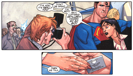 "One of the reasons Superman is instantly attracted to her is because she constantly surprises him, and he's hard to surprise. Plus, the moment Clark first meets Lois, he's awed--and you'll see why in issue four."