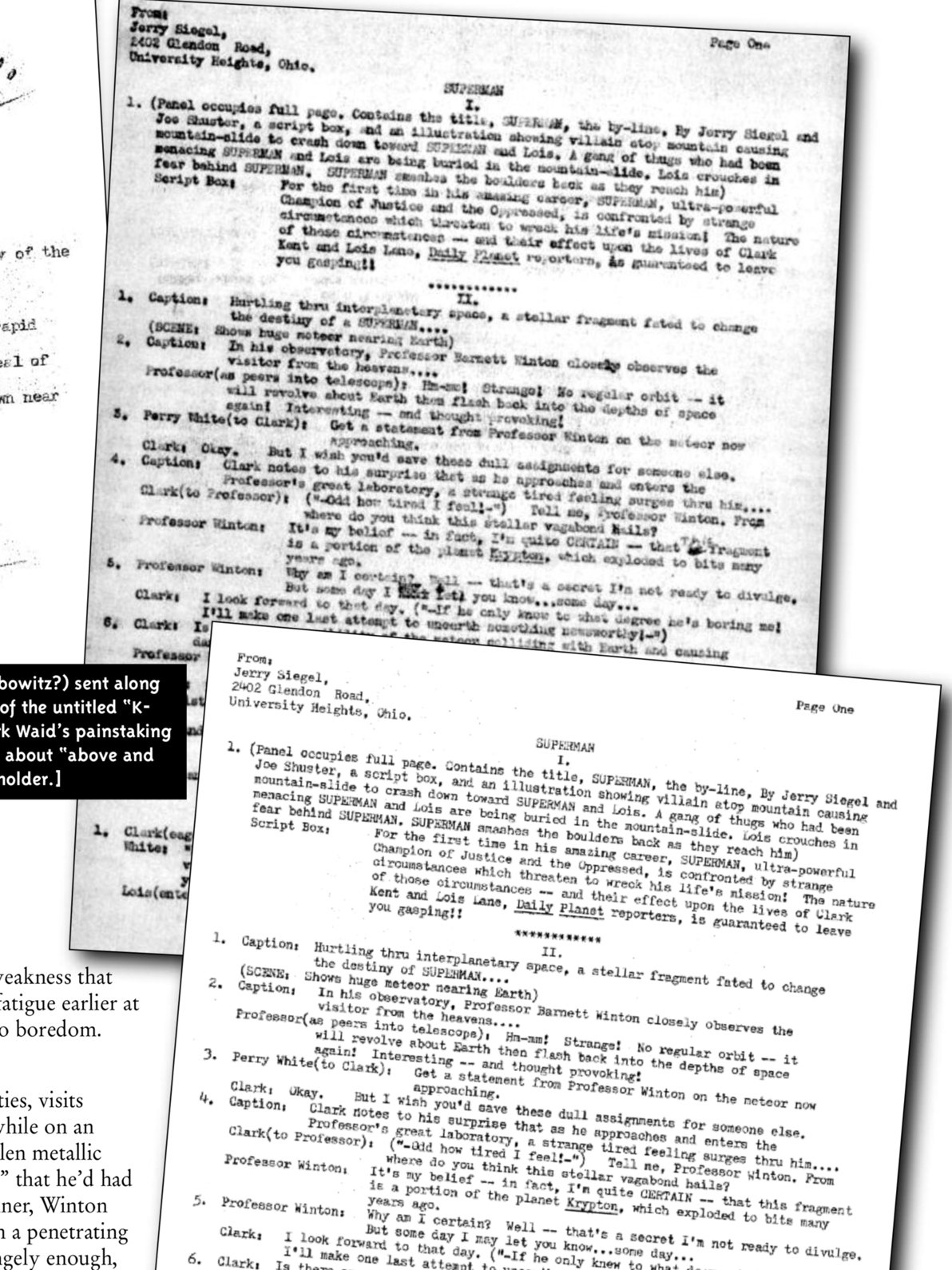 This is from Mark Waid's K-Metal article in Alter Ego 26 - the top shows Jerry Siegel's mimeograph, the bottom is Mark Waid's retyped version.