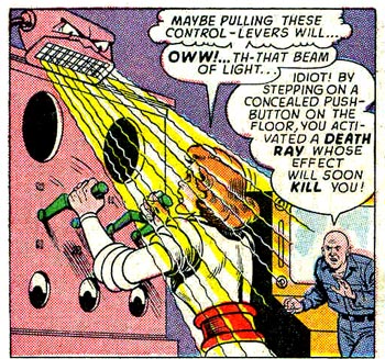 Superman with Gold Kryptonite fired from his "Astro-Cannon,"