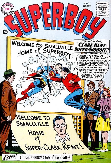#107 (Sept. 1963), wherein Clark simply discards his super