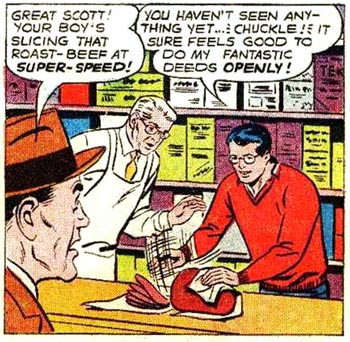 Arriving at his parents' general store, Clark again uses