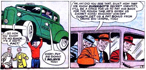 in the bushes to nab the gangsters and Superboy needn't