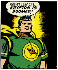 The father of Superman and the foremost scientist of the planet Krypton prior to its destruction. A scientific genius with a fertile, wide-ranging intellect, he conducted far-reaching experiments in rocketry, invented a matter-transmitter and numerous other marvels, and discovered the Phantom Zone.It was Jor-El who predicted to an unbelieving population that "Krypton would explode from gathering atomic pressures at the core of the planet." (1953) When the doomsday came, he dispatched the infant Superman toward Earth in an experimental rocket, remaining behind with his wife Lara to perish in the cataclysm.